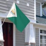 العلم ذو خلفية خضراء ترمز إلى الخضرة والحياة.