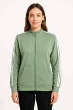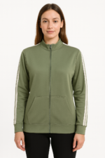 Stay warm and stylish with this جاكيت نسائي بشريطين مخططين, designed with a modern sporty look.